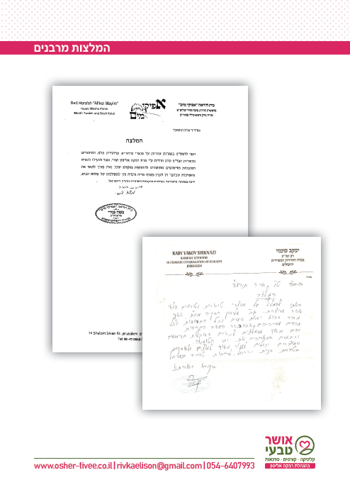 רבנים שליט"א במכתב המלצה על הטיהורית :